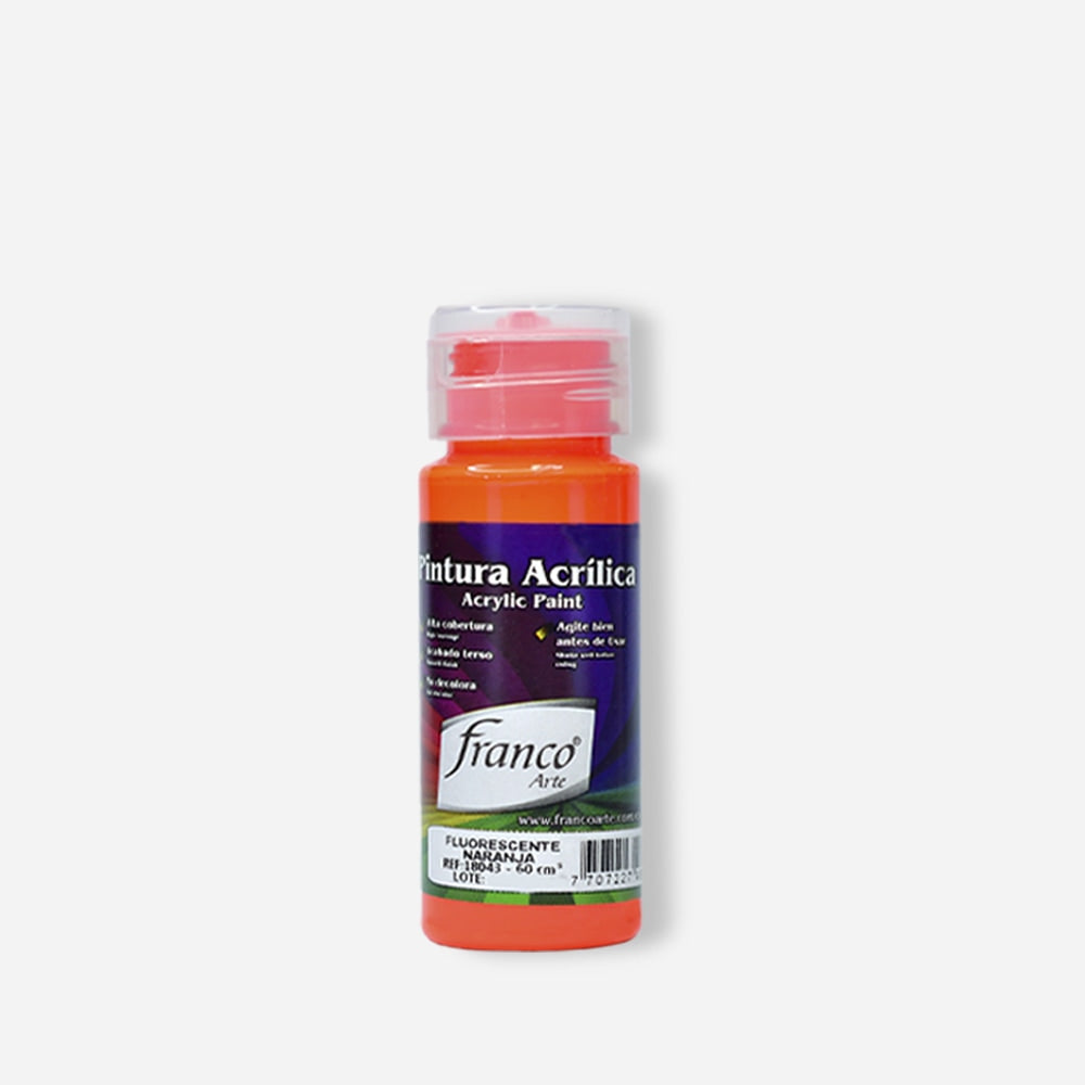 La PINTURA ACRÍLICA FRANCO ARTE es una pintura a base de agua cuyos formadores de película son emulsiones acrílicas. Usos: Decora, protege o señala, materiales como: madera, MDF, yeso, cerámica, cartón, papel, icopor, paredes (interiores), entre otros. Características: NO TÓXICA, acabado liso, durable, no se decolora, lavable, alto rendimiento, buen cubrimiento, fácil aplicación, excelente adherencia, resistencia a la abrasión, entre otros.